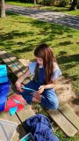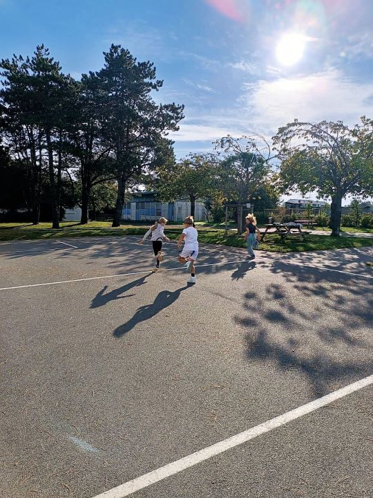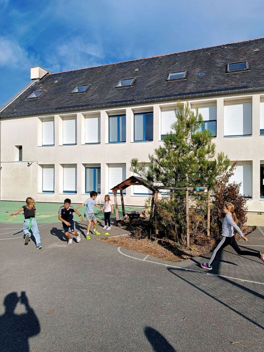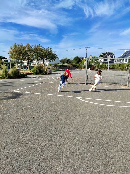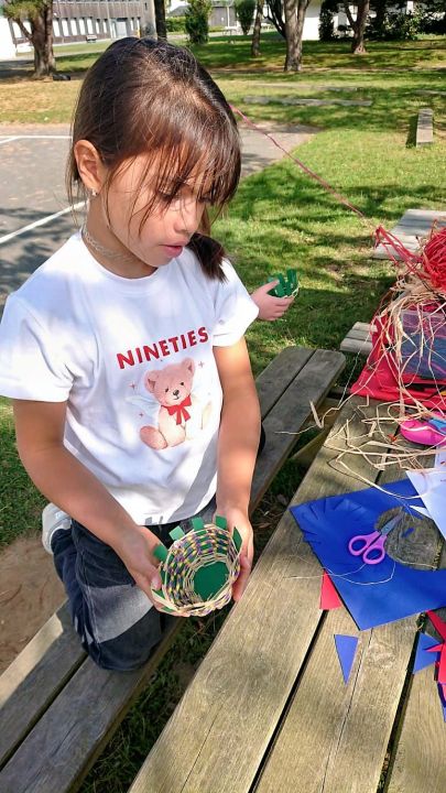 Sous le soleil, les enfants ont pu se défouler le matin dans la cour avec quelques jeux avant de profiter de l'après-midi pour peindre ou faire de petites corbeilles en raphia.